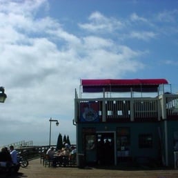 Honestly location, location, location! This cute little spot is nestled at the end of the pier, and has indoor and outdoor seating. We came on a Wednesday, midday- no rain and it was absolutely perfect! The service is quick, staff is friendly and inviting. Feels like home when they greet you. The lunch menu isn't large but has some great options, a lot of fried options. Definitely not your first stop for those New Year's resolutions. We ordered a kids fish and chips, a bowl of clam chowder, and the large prawns and chips platter. The fish and chips were delicious, crispy, flavorful and fresh. The shrimp was large and scrumptious- the tartar sauce was fresh and really added a great flavor to the fried items. Opted for sweet potato fries and those were equally as delicious. I wasn't a fan of the clam chowder- something was off. It wasn't curdled or spoiled. It just tasted sweet with a very thick and clumpy consistency. Took two bites and couldn't do anymore. Our waitress seemed offended when I told her I didn't care for it. She said she's only had two people in her 17 years not like it. So maybe it was just me, or an off day- but it wasn't good. Overall I'd go back for a quick bite, beautiful view and friendly staff!